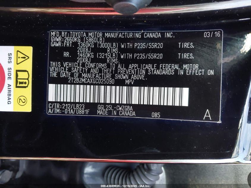 2016 LEXUS RX 350 BASE