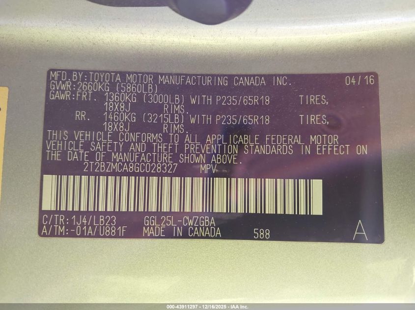 Цвет Цилиндры 6Привод Полный приводVIN 2T2BZMCA8GC028327Состояние НеизвестноПовреждения Передняя или задняя