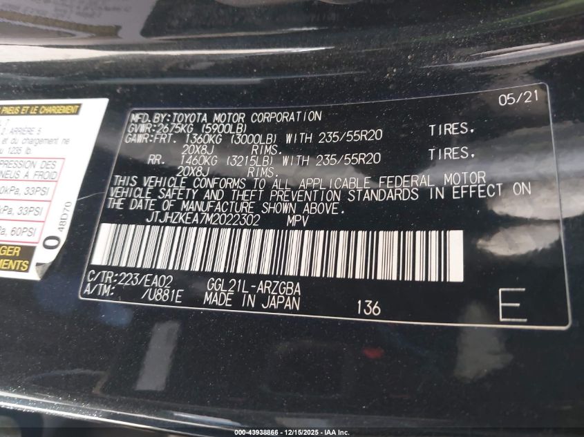 Цвет ЧерныйЦилиндры 6Привод Передний приводVIN JTJHZKEA7M2022302Состояние СтационарноПовреждения Передняя или задняя