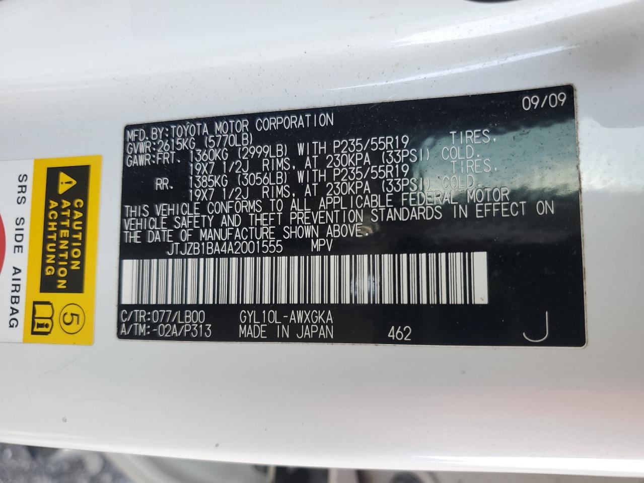 2010 LEXUS RX 450H - JTJZB1BA4A2001555, цвет - Белый, 3.5, Гибрид, из США