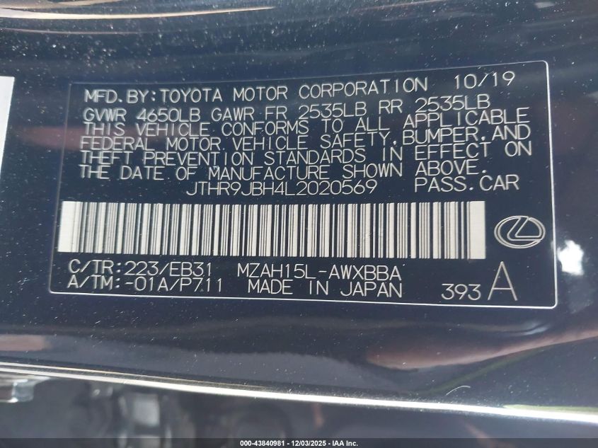 2020 LEXUS UX 250H - JTHR9JBH4L2020569, цвет - Черный, 2.0, Гибрид, Полный привод из США