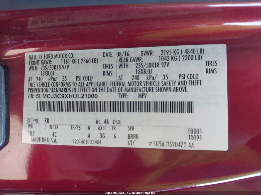2017 LINCOLN MKC - 5LMCJ3C9XHUL21000, цвет - Красный, 2.0, Бензин, Передний привод из США
