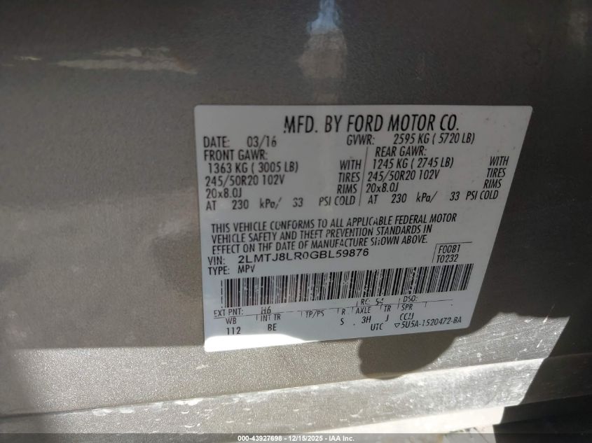 Цвет СерыйЦилиндры 6Привод Полный приводVIN 2LMTJ8LR0GBL59876Состояние Заводится и едет (проверено)Повреждения Задняя