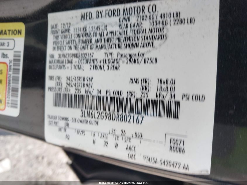 2013 LINCOLN MKZ - 3LN6L2G98DR802167, цвет - Черный, 2.0, Бензин, Передний привод из США