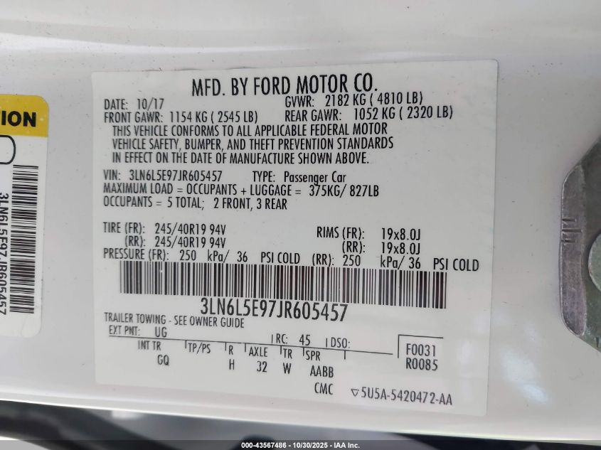 2018 LINCOLN MKZ - 3LN6L5E97JR605457, цвет - Белый, 2.0, Бензин, Передний привод из США