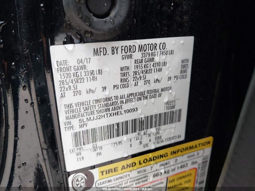 2017 LINCOLN NAVIGATOR - 5LMJJ2HTXHEL10093, цвет - Черный, 3.5, Бензин, из США