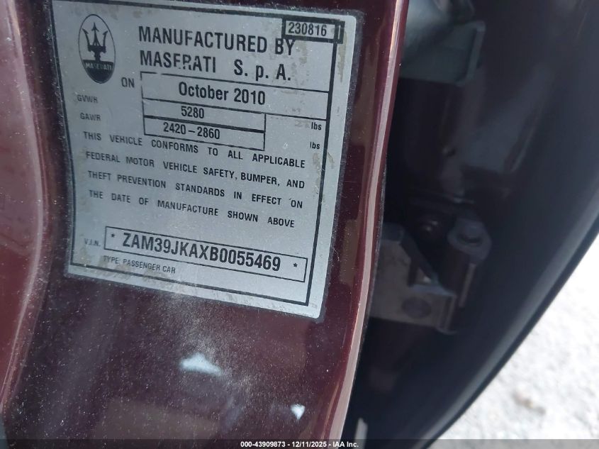 2011 MASERATI QUATTROPORTE - ZAM39JKAXB0055469, цвет - Бургундия, 4.7, Бензин, Задний привод из США