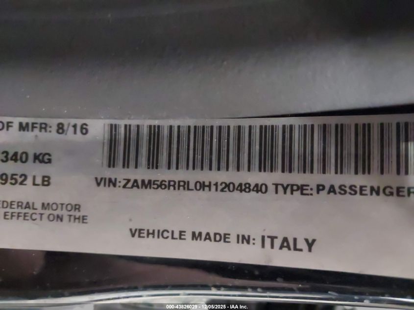 Цвет ЧерныйЦилиндры 6Привод Полный приводVIN ZAM56RRL0H1204840Состояние Заводится и едет (проверено)Повреждения Передняя или задняя