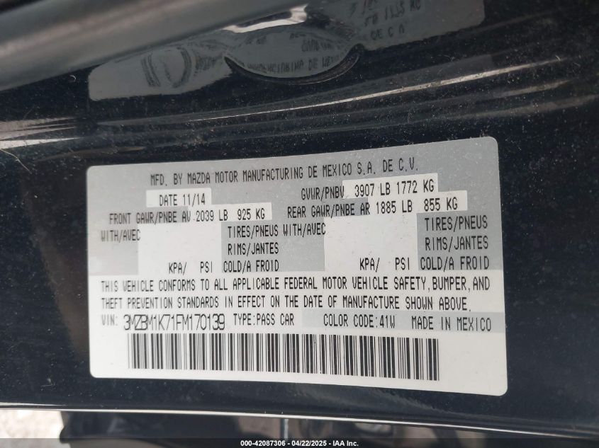 Цвет БежевыйЦилиндры 4Привод Передний приводVIN 3MZBM1K71FM170139Состояние Заводится и едет (проверено)Повреждения ЗадняяДата аукциона 2025-10-08
