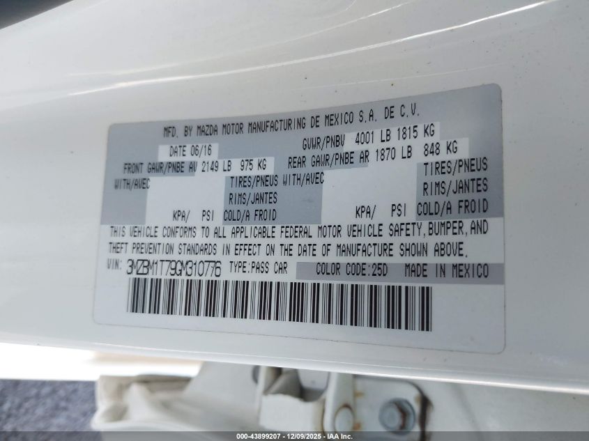 2016 MAZDA 3 - 3MZBM1T79GM310776, цвет - Белый, 2.0, Бензин, Передний привод из США