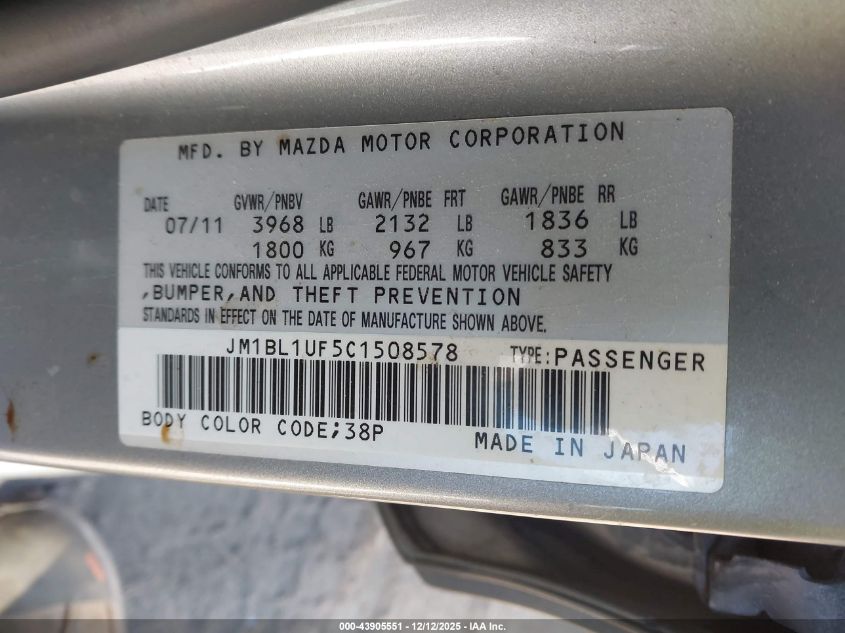 2012 MAZDA 3 - JM1BL1UF5C1508578, цвет - Серый, 2.0, Бензин, Передний привод из США