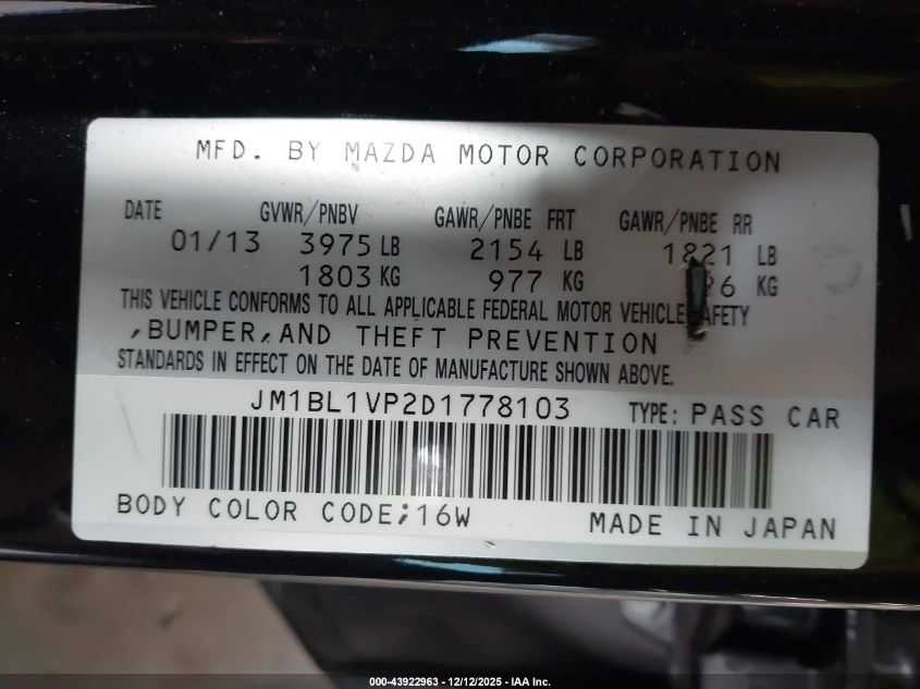 2013 MAZDA 3 - JM1BL1VP2D1778103, цвет - Черный, 2.0, Бензин, Передний привод из США