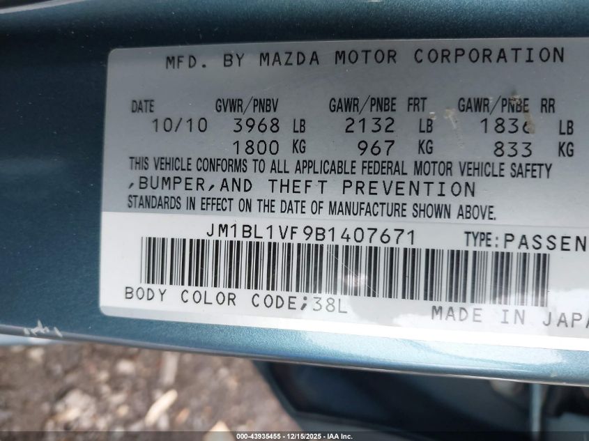 2011 MAZDA 3 - JM1BL1VF9B1407671, цвет - Синий, 2.0, Бензин, Передний привод из США
