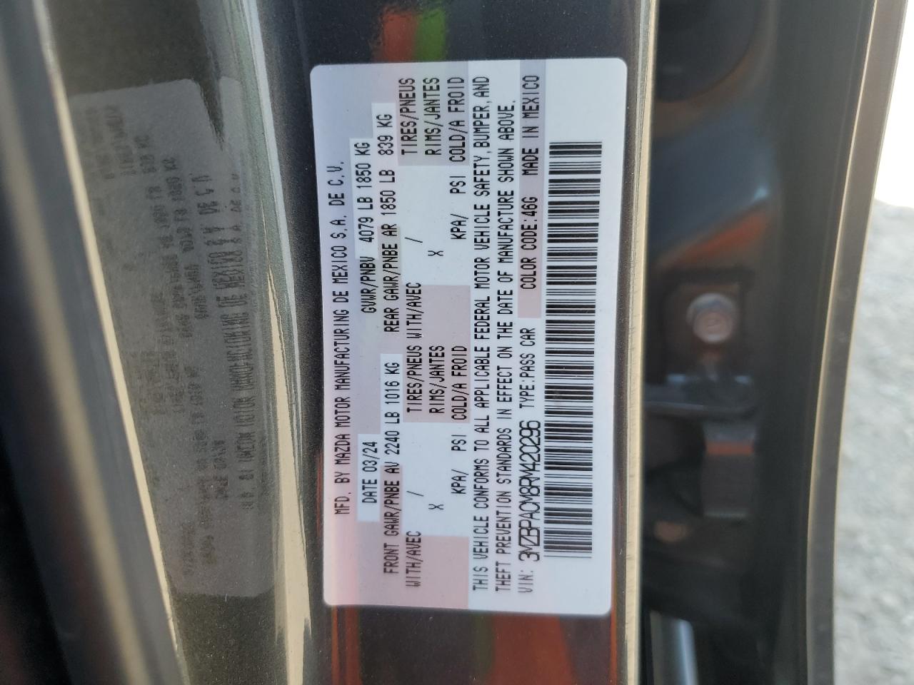 2024 MAZDA 3 - 3MZBPACM8RM420296, цвет - Серый, 2.5, Бензин, из США
