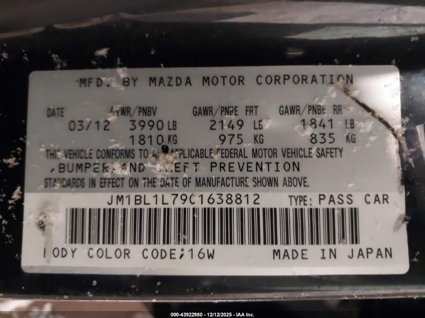 2012 MAZDA 3 - JM1BL1L79C1638812, цвет - Черный, 2.0, Бензин, Передний привод из США