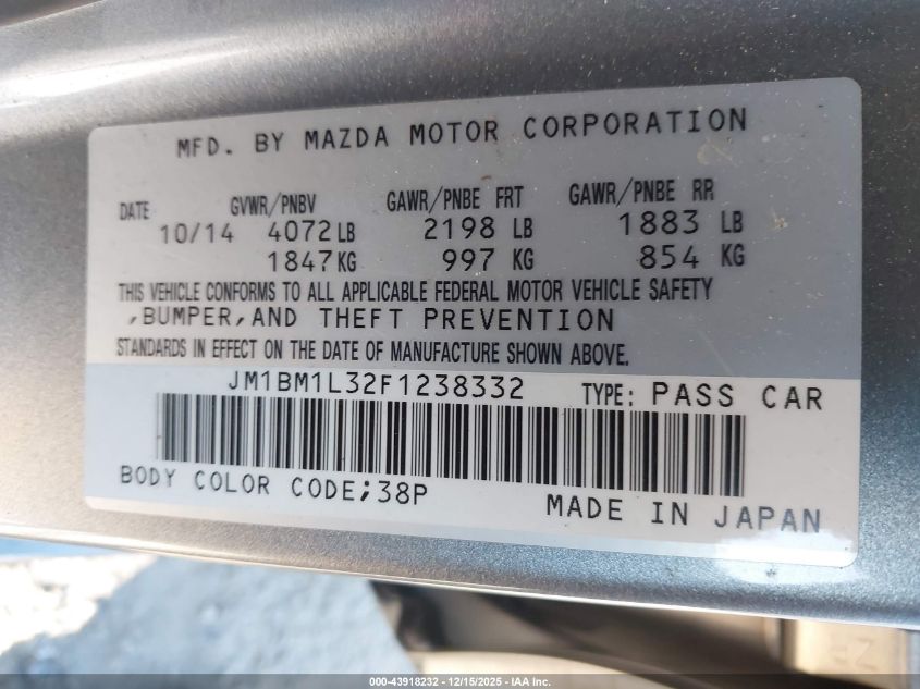2015 MAZDA 3 - JM1BM1L32F1238332, цвет - Серый, 2.5, Бензин, Передний привод из США