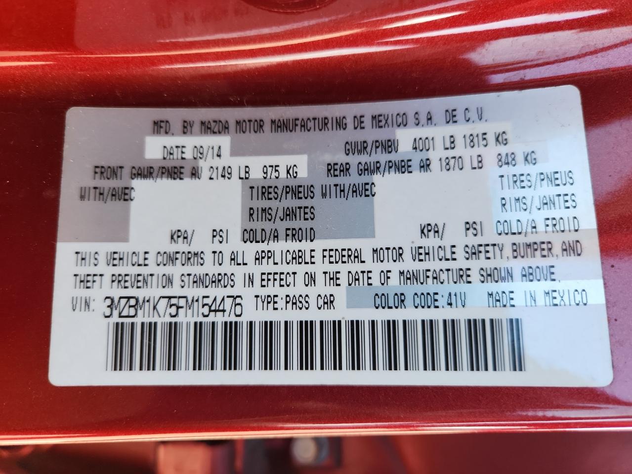 2015 MAZDA 3 - 3MZBM1K75FM154476, цвет - Красный, 2.0, Бензин, из США