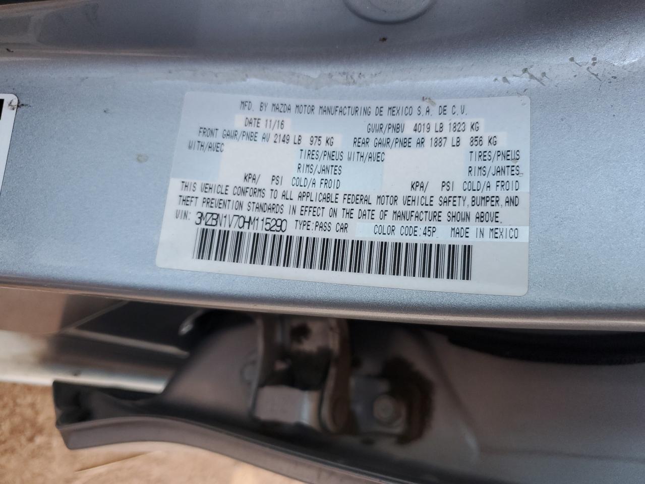 2017 MAZDA 3 - 3MZBN1V70HM115290, цвет - Серебряный, 2.0, Бензин, из США