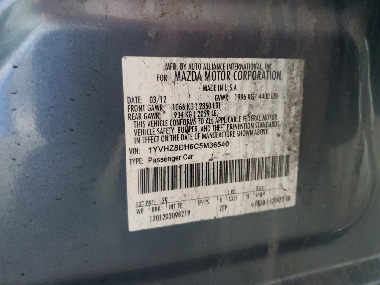 Цвет СинийЦилиндры 4VIN 1YVHZ8DH6C5M36540Состояние НеизвестноПовреждения НизДата аукциона 2025-10-09