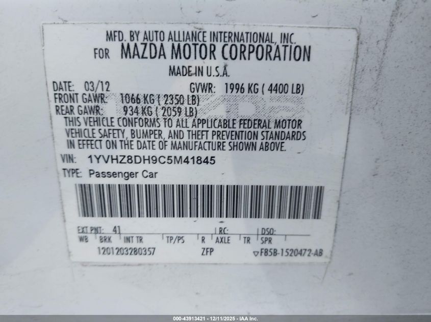 Цвет БелыйЦилиндры 4Привод Передний приводVIN 1YVHZ8DH9C5M41845Состояние СтационарноПовреждения Передняя или задняя