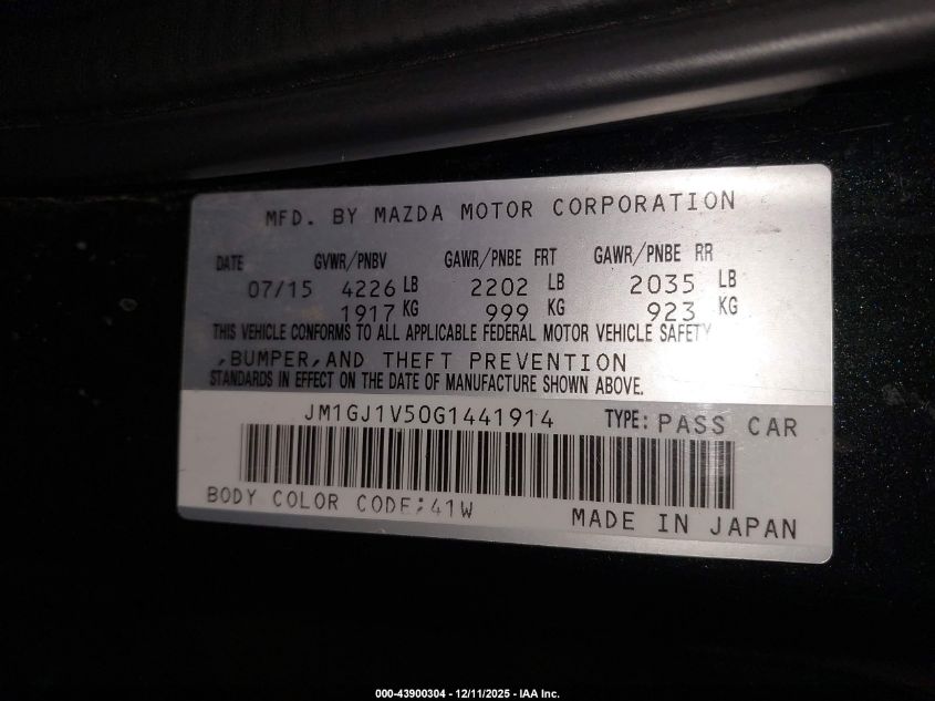 2016 MAZDA 6 - JM1GJ1V50G1441914, цвет - Черный, 2.5, Бензин, Передний привод из США