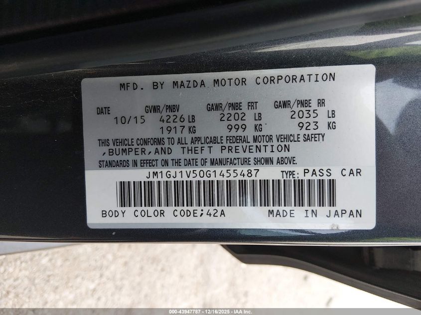 2016 MAZDA 6 - JM1GJ1V50G1455487, цвет - Серый, 2.5, Бензин, Передний привод из США
