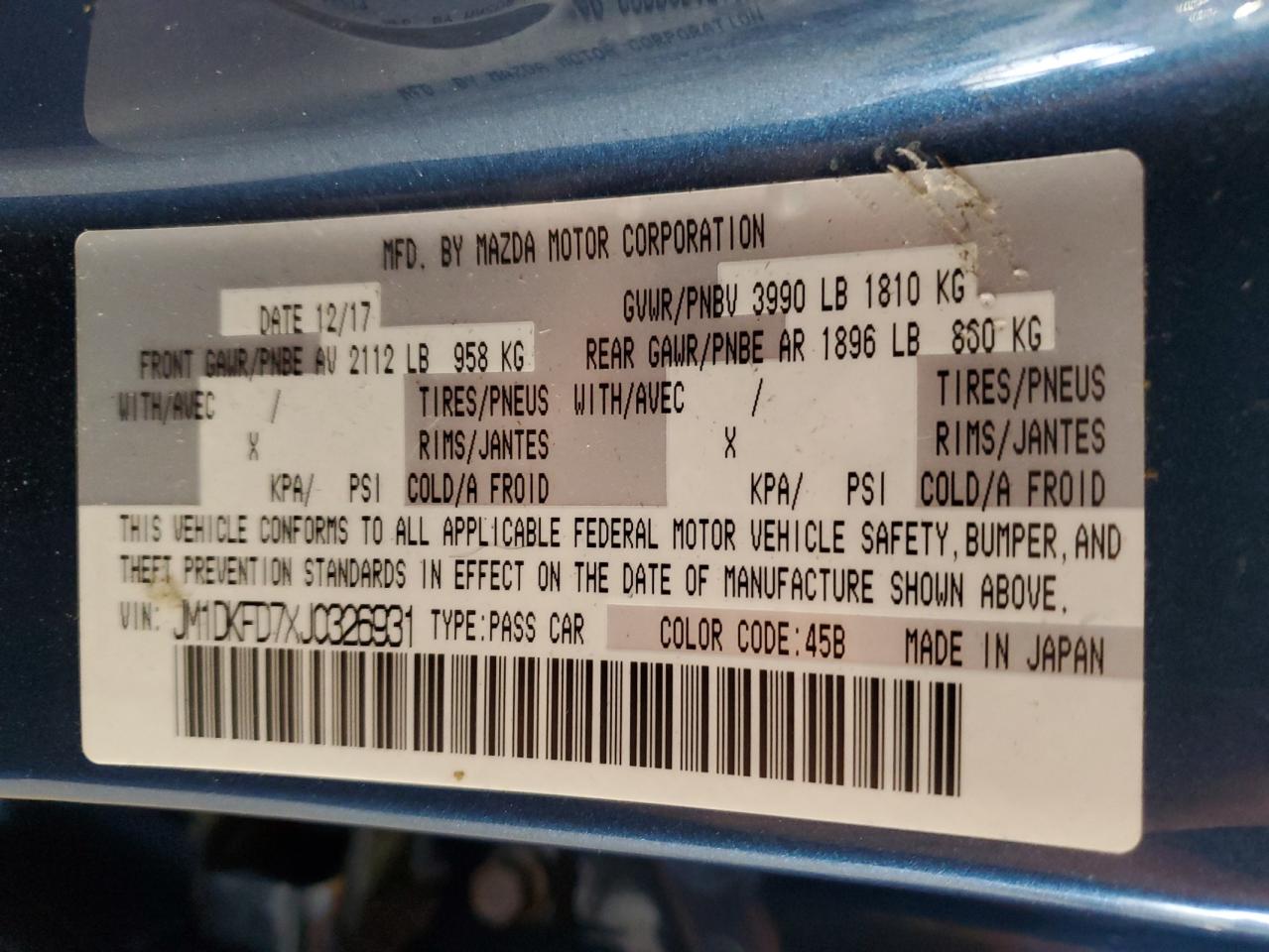 Цвет СинийЦилиндры 4Привод Полный приводVIN JM1DKFD7XJ0326931Состояние НеизвестноПовреждения Передняя или задняяДата аукциона 2025-10-09