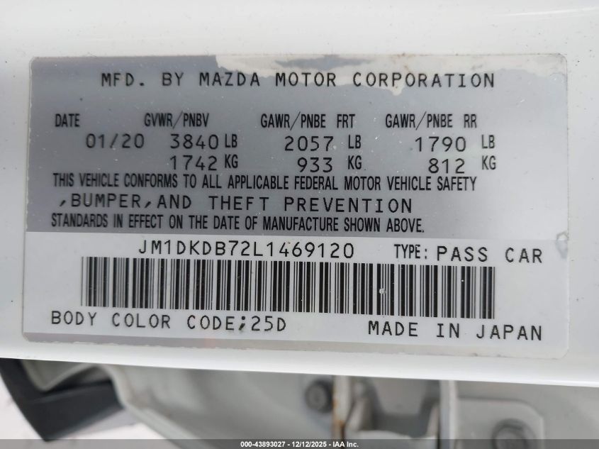 2020 MAZDA CX-3 - JM1DKDB72L1469120, цвет - Белый, 2.0, Бензин, Передний привод из США