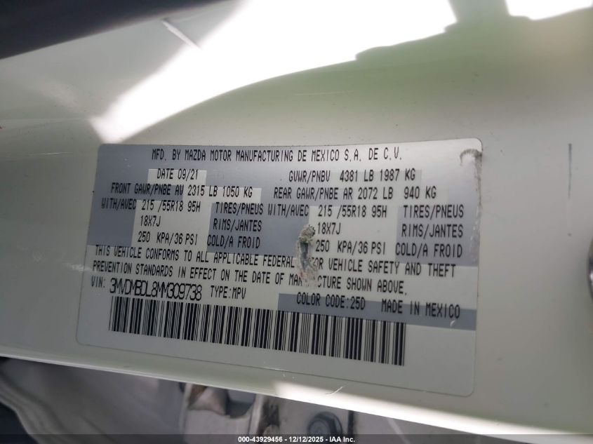2021 MAZDA CX-30 - 3MVDMBDL8MM309738, цвет - Белый, 2.5, Бензин, Полный привод из США