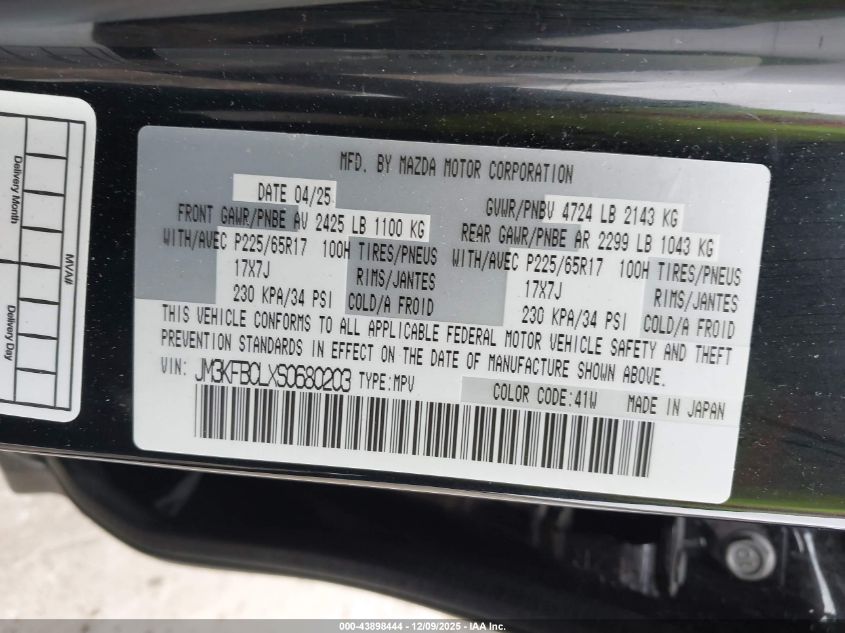 Цвет СинийЦилиндры 4Привод Полный приводVIN JM3KFBCLXS0680203Состояние Заводится и едет (проверено)Повреждения ЗадняяДата аукциона 2025-12-17