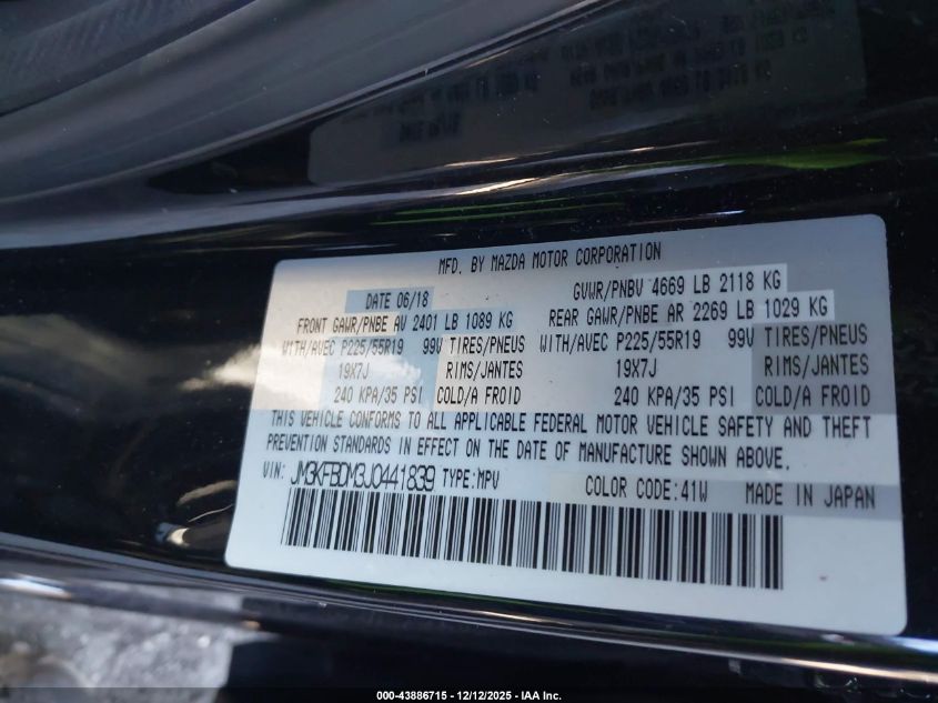 2018 MAZDA CX-5 - JM3KFBDM3J0441839, цвет - Черный, 2.5, Бензин, Полный привод из США