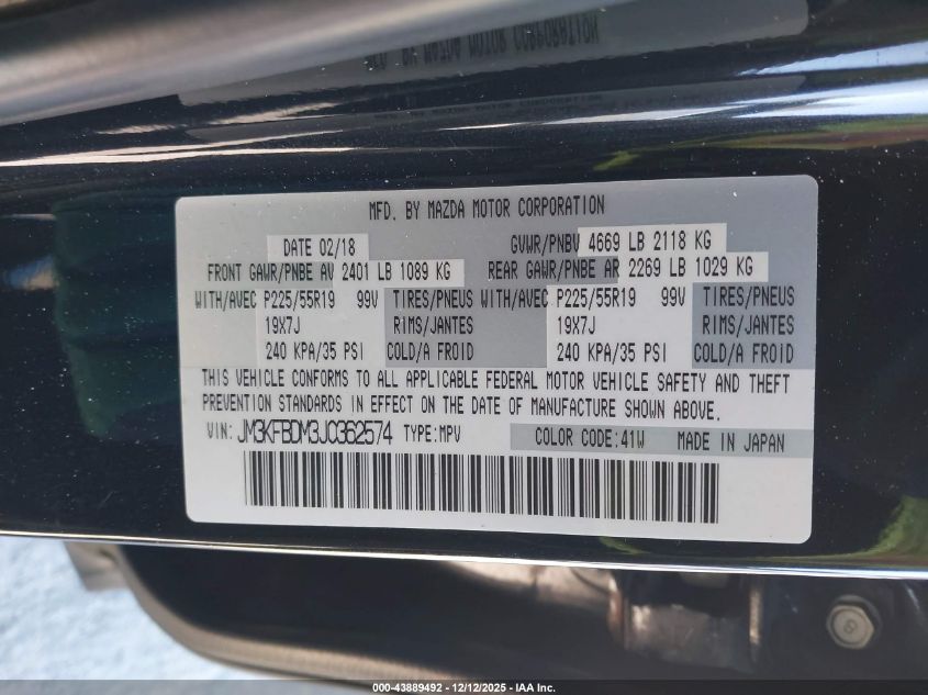 2018 MAZDA CX-5 - JM3KFBDM3J0362574, цвет - Черный, 2.5, Бензин, Полный привод из США