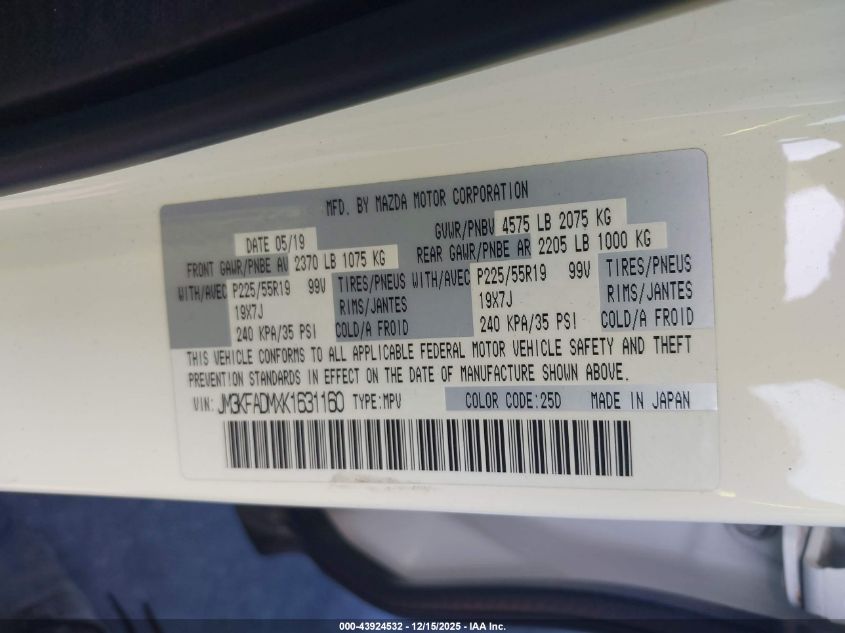 2019 MAZDA CX-5 - JM3KFADMXK1631160, цвет - Белый, 2.5, Бензин, Передний привод из США