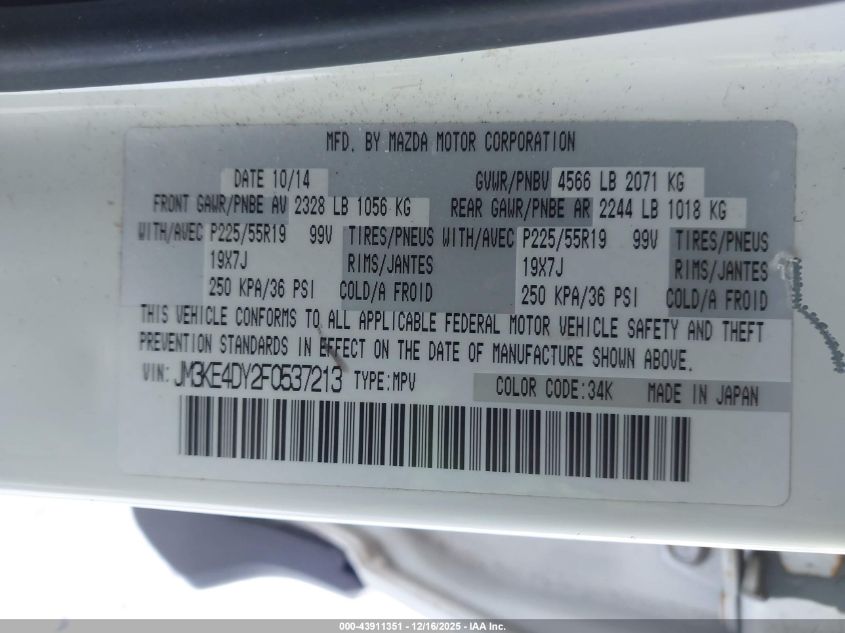 2015 MAZDA CX-5 - JM3KE4DY2F0537213, цвет - , 2.5, Бензин, Полный привод из США