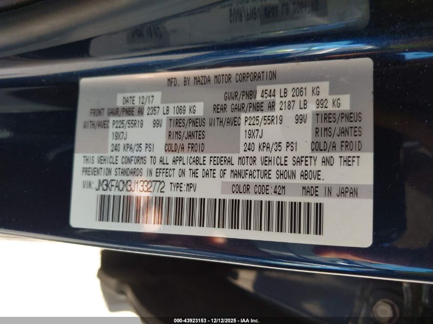 Цвет СинийЦилиндры 4Привод Передний приводVIN JM3KFACM3J1332772Состояние ЗаводитсяПовреждения Передняя или задняя