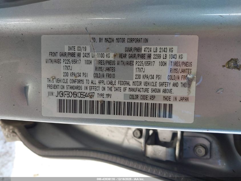 2019 MAZDA CX-5 - JM3KFBCM6K0594427, цвет - , 2.5, Бензин, Полный привод из США