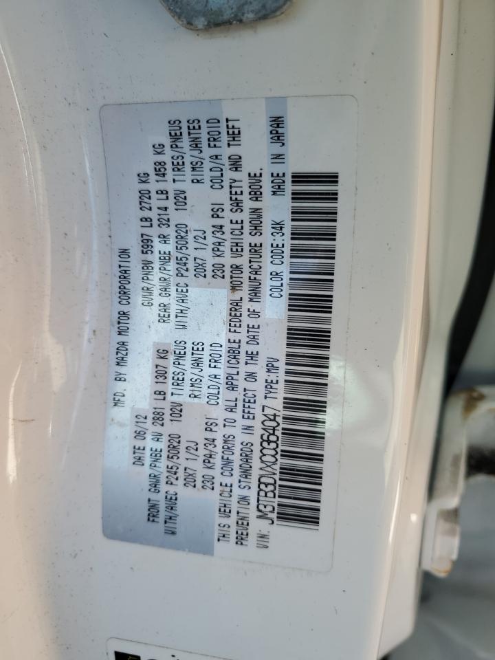 2012 MAZDA CX-9 - JM3TB3DVXC0364047, цвет - Белый, 3.7, Бензин, Полный привод из США