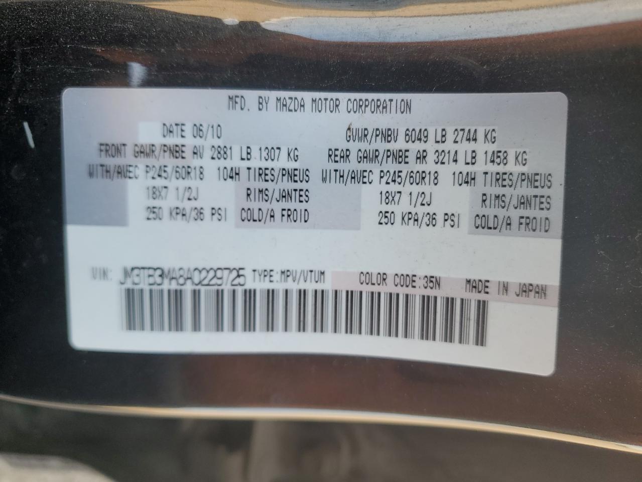 2010 MAZDA CX-9 - JM3TB3MA8A0229725, цвет - Черный, 3.7, Бензин, Полный привод из США
