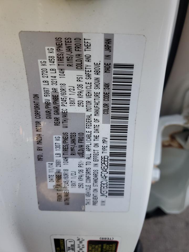 2015 MAZDA CX-9 - JM3TB3CV4F0452565, цвет - Белый, 3.7, Бензин, Полный привод из США
