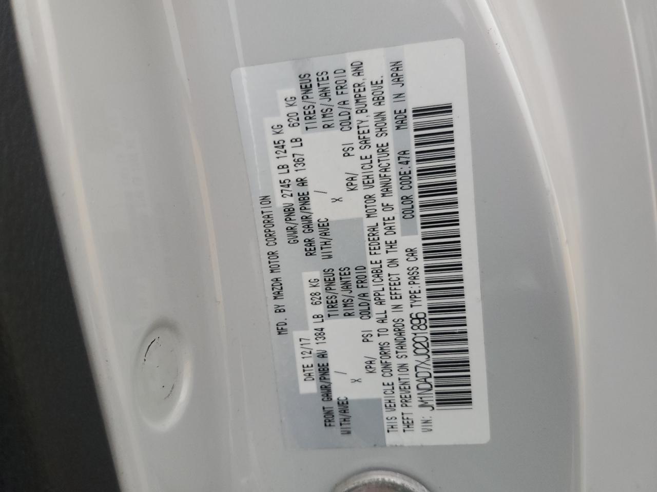 2018 MAZDA MX-5 - JM1NDAD7XJ0201896, цвет - Белый, 2.0, Бензин, Задний привод из США