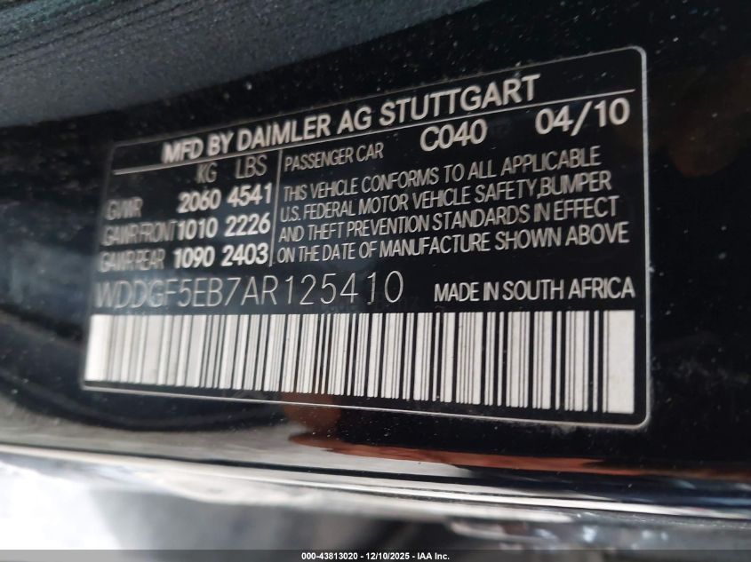 Цвет ЧерныйЦилиндры 6Привод Задний приводVIN WDDGF5EB7AR125410Состояние Заводится и едет (проверено)Повреждения Передняя или задняя