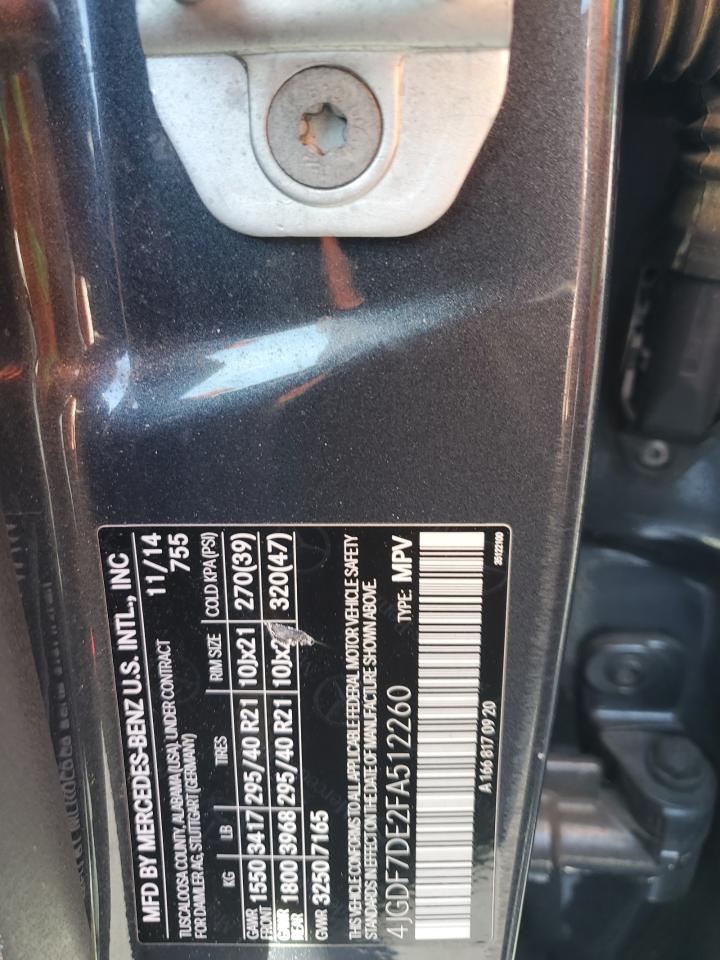 2015 MERCEDES-BENZ GL-CLASS - 4JGDF7DE2FA512260, цвет - Серый, 4.6, Бензин, Полный привод из США