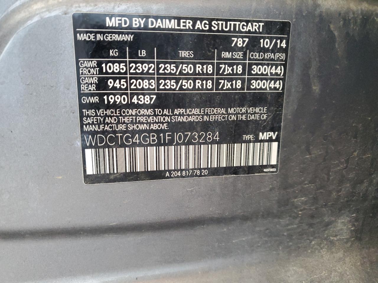 Цвет СерыйЦилиндры 4Привод Полный приводVIN WDCTG4GB1FJ073284Состояние Заводится и едет (проверено)Повреждения Передняя или задняяДата аукциона 2025-10-08