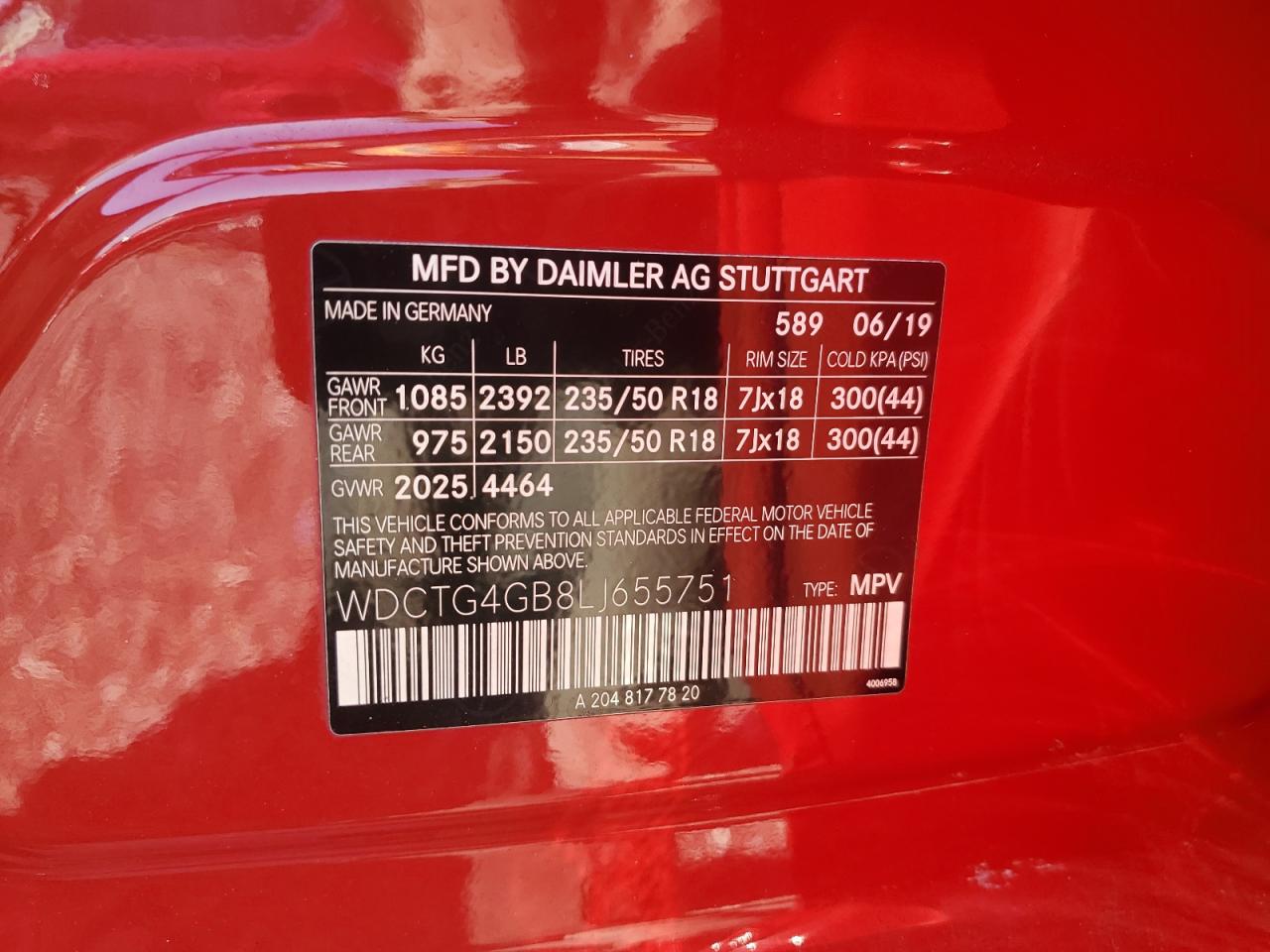 Цвет КрасныйЦилиндры 4Привод Полный приводVIN WDCTG4GB8LJ655751Состояние Заводится и едет (проверено)Повреждения Передняя или задняяДата аукциона 2025-10-09