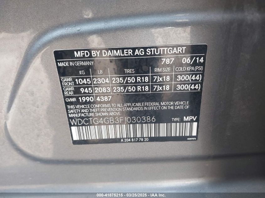 2015 MERCEDES-BENZ GLA-CLASS - WDCTG4GB3FJ030386, цвет - Серый, 2.0, Бензин, Полный привод из США