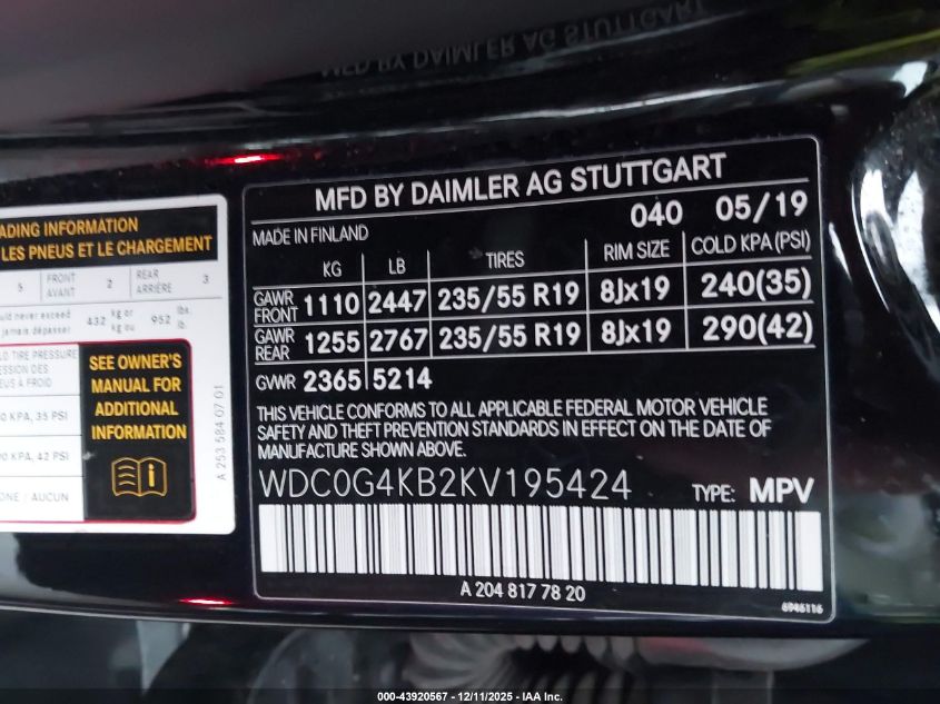 Цвет ЧерныйЦилиндры 4Привод Полный приводVIN WDC0G4KB2KV195424Состояние Заводится и едет (проверено)Повреждения Передняя или задняя