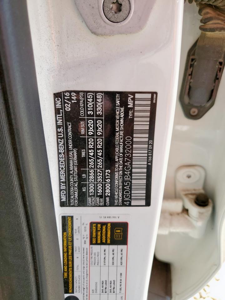 2016 MERCEDES-BENZ GLE-CLASS - 4JGDA5JB4GA732000, цвет - Белый, 3.5, Бензин, Задний привод из США
