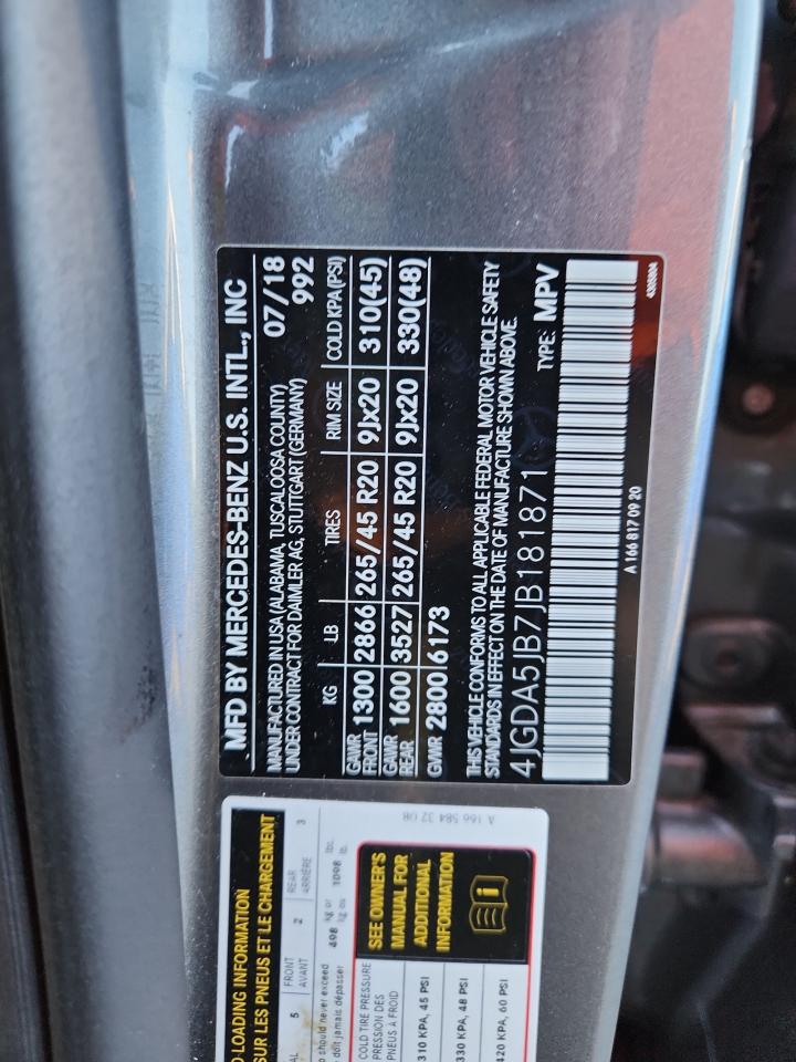 2018 MERCEDES-BENZ GLE-CLASS - 4JGDA5JB7JB181871, цвет - Серый, 3.5, Бензин, Задний привод из США