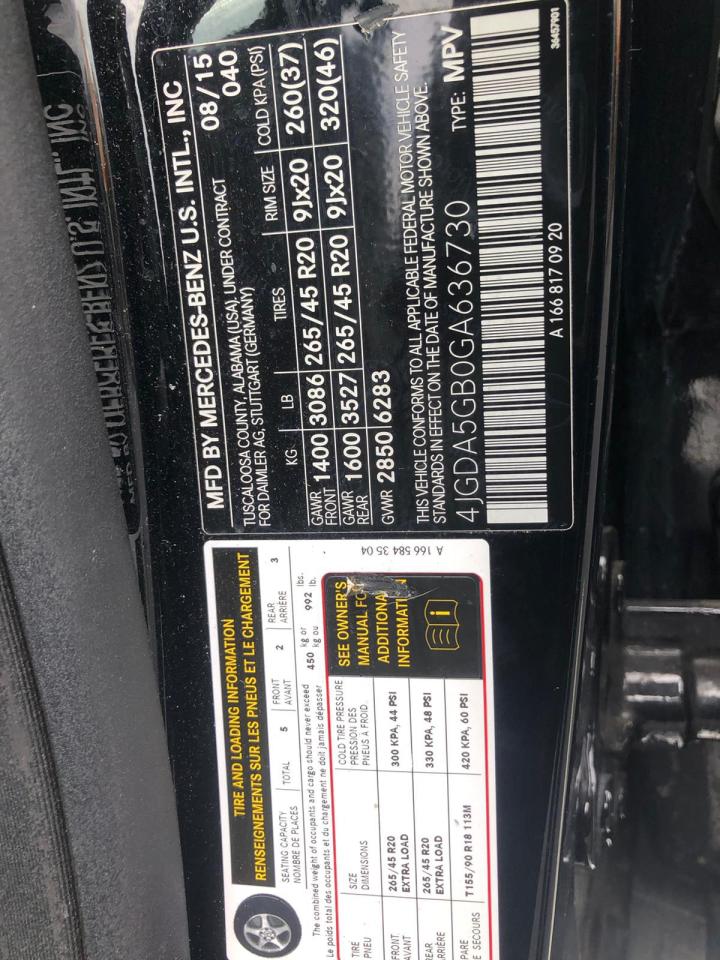 2016 MERCEDES-BENZ GLE-CLASS - 4JGDA5GB0GA636730, цвет - Черный, 3.0, Бензин, Полный привод из США