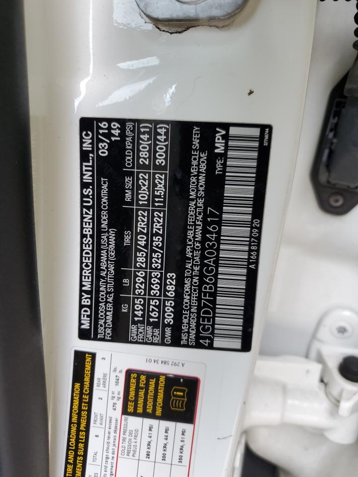 2016 MERCEDES-BENZ GLE-CLASS - 4JGED7FB6GA034617, цвет - Белый, 5.5, Бензин, Полный привод из США